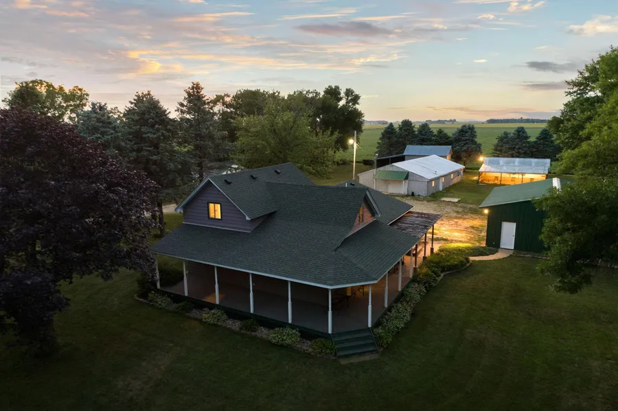 If you have been looking for a little slice to design that hobby farm life - look no further! Just a few minutes from Austin, this acreage sits on 5.4 acres and is surrounded by mature trees, hugging you in your own oasis. Step inside to a tastefully updated farmhouse with everything you need on the main level including kitchen, dining, living, laundry, 2 baths and a bedroom. Modern kitchen with a rustic vibe - white cabinets and darker countertops/backsplash. Nice mix of old world charm and new with a perfect blend of original hardwoods and newer LVP flooring. 3 bedrooms on the upper level. 60x8 south & east facing wrap around and covered composite porch. Double pane windows throughout and metal siding. Roughly 2.2 acres of pasture on the eastern part of the property. New septic to be installed. Outbuildings include: 36x30 3-Stall Garage, 32x60 Hog Barn, 32x14 1-Stall Garage, 14x26 Granary, & 20x20 1-Stall Garage. Come take a tour before someone else scoops up this amazing property!