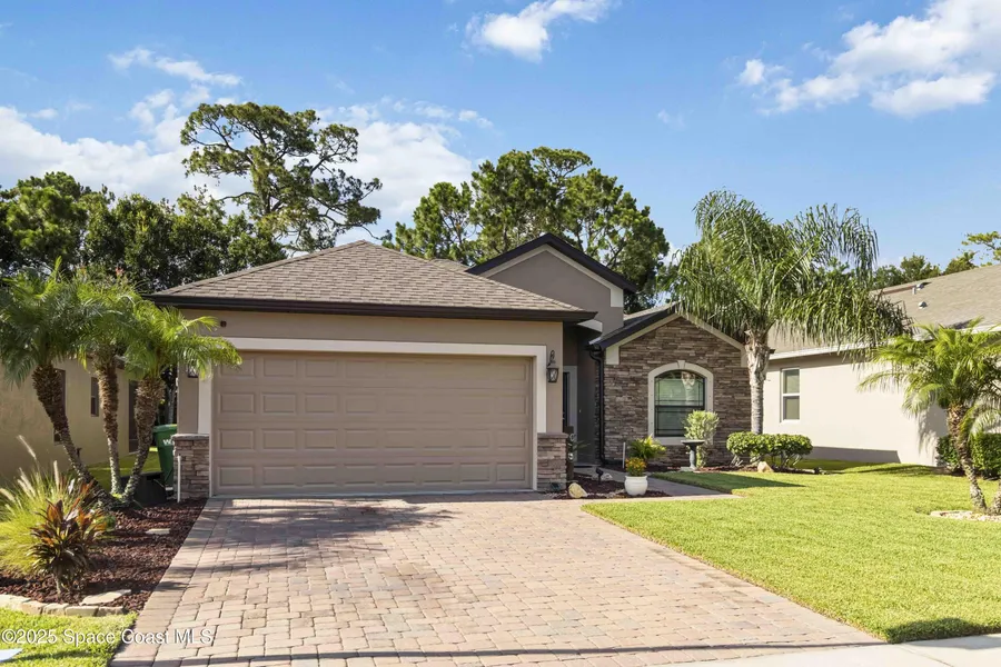 Beautiful 3-bedroom, 2-bath home located in the gated community of Emerald Lakes in Cocoa. The kitchen features granite countertops and brand-new appliances (2025), and opens to a spacious living area with vaulted ceilings and sliders for natural light. Ceramic tile in all wet areas, with cozy carpet in the remainder of the home. The generous owner's suite includes a large ensuite with dual sinks, a soaking tub, and a separate shower. Enjoy a private backyard with a fire pit, no rear neighbors, and tranquil views of the lake beyond the tree line. Roof, A/C, and water heater 2015. Fresh exterior paint May 2025. Community amenities include a playground, basketball court, and jogging trail.