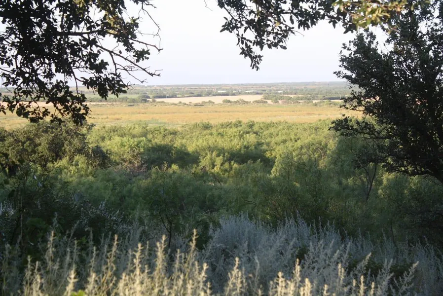 Terrain: The terrain is rolling mesquite country with a distinct, live oak covered ridgeline. Lower ground is heavily wooded in mesquite trees with numerous stock tanks. There are two cultivated fields on the west side of the property where the entrance is located. The fields are located at a higher elevation than the majority of the property. Several drainages form off the ridge and run through the lower land.