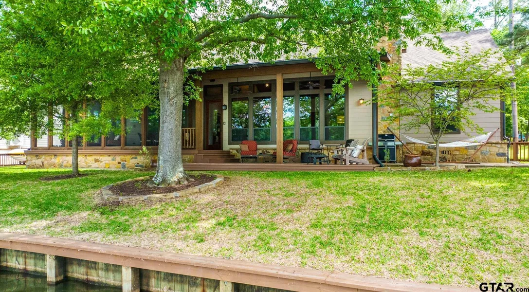 BEAUTIFUL CUSTOM LAKEHOME in Tall Tree on Lake Cypress Springs! Sunset Views situated on .59-acre lot with Fenced Lakeside Yard. This immaculate Hardi-plank/Stone Home was completed in 2012 and offers 2,222 SF living space, 3 Bedrooms, Bonus Room off Main Bedroom, and 2 Baths. Hardwood floors throughout. The Open Floor Plan features large windows, stone wood-burning fireplace, vaulted spruce ceiling with spruce beams, knotty alder cabinets, doors and trim. The Kitchen offers large breakfast bar, granite countertops, farm apron sink, stainless appliances, gas cooktop and lots of storage. Well designed with a walk-in pantry, laundry with utility sink, and storage room for miscellaneous tools. The Owner's Wing includes a study (could be extra bedroom) with built-in cabinet, access to screened porch and Main bedroom overlooking the screened porch with beautiful lake views. Large Main Bath with Kohler soaking tub and separate shower. Large walk-in closet. The Guest Wing includes 2 bedrooms and Guest Bath. Lakeside relaxation areas are well designed with screened porch, deck with covered sitting area, and stone patio adjacent to the deck, all a very short distance to the 1-stall boathouse. Nicely landscaped with trees, shrubs, stone edging and sprinkler system. The lakeside yard has 3-foot wood fence great for pets. The Carport contains large walk-in storage for garden equipment and an amazing mechanical closet for maintenance convenience (see attached for detail). This Custom Home COMES BEAUTIFULLY FURNISHED with few exceptions and Includes Mesh WiFi System. EXTREMELY WELL MAINTAINED with attention to detail! Great Weekender but is also the Perfect Lakeside Retirement Home! Call today for your private showing!