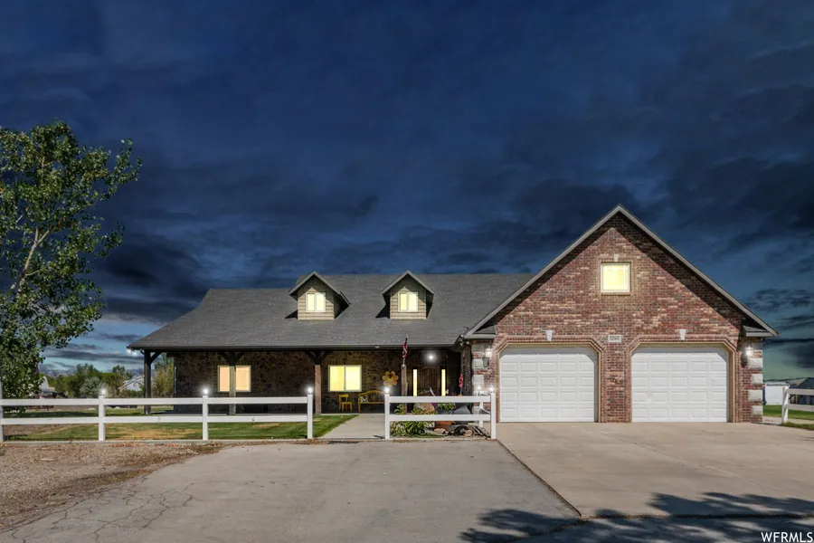Custom, single level, all brick ranch home with just over seven acres in highly sought after, Lake Shore, UT. Outside of the home, you will enjoy nights around the fire pit, an east facing porch to watch the beautiful sunrises coming over the mountains, a west facing patio to enjoy the sunsets, a mini motorcycle track, horse corals and a riding arena, approximately 3.5 acres of pasture, a fully landscaped yard, and so much more. Inside of the home boosts custom built-ins in the living room, a pellet stove that heats the home with little help from the heater, beautiful brick/rock built in sitting in the living room, an open living concept, high vaulted ceilings throughout, over sized bedrooms, custom concrete stamped flooring, an attached tandem car garage. The master bedroom features a private fireplace, his and her walk in closets, and a separate jetted tub & shower. No need to worry about power outages, this home has a self starting back-up generator that generates enough power to run the well, and standard lighting and refrigeration needs of the home. Home has a 40x80 mechanics shop on the property with over-sized garage doors that are tall enough to fit semis, large boats, and tractors in for necessary repair & maintenance and storage. Mechanics shop is fully insulated, includes and office and wash room, and has heating & cooling available. Property also has 40'x40' hay barn to store crops or to park motor homes, boats, etc.