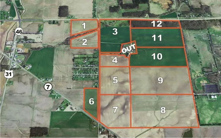 LAND: 529 total acres of level to gently rolling farmland to be offered in 12 tracts. Rural water available from Eastern Bartholomew County Water.