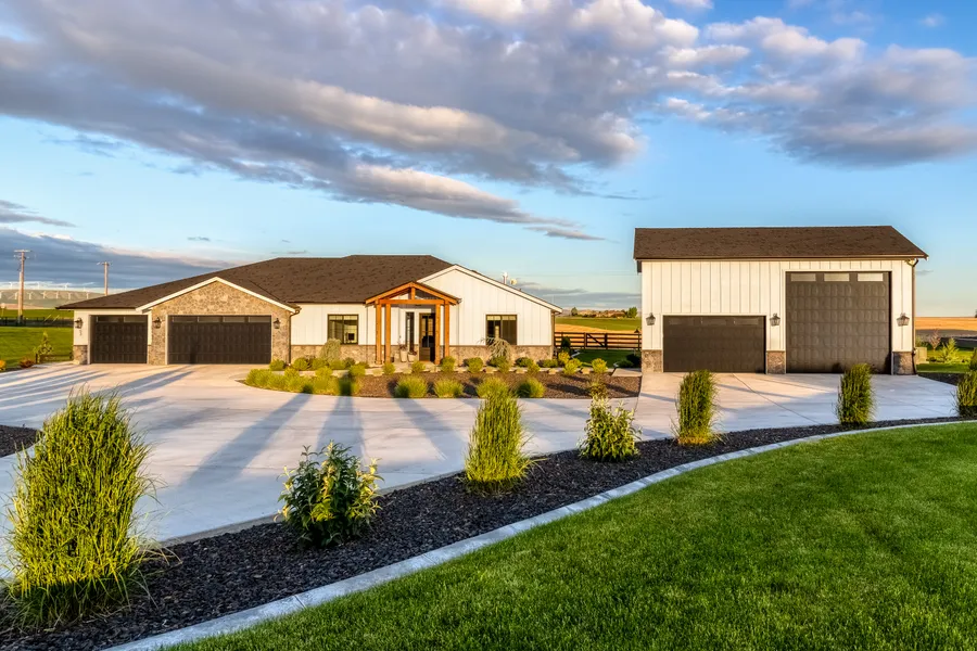 Picture perfect views in all directions from this expertly crafted stone Creek custom home. Thoughtful one level floor plan provides all of the modern luxuries while being surrounded by the world renowned Palouse hills landscape. Inviting great room concept combines classic finishes with warm wood accents. Vaulted ceilings and walls of windows Make this an entertainer's dream with high end Bosch appliances, tons of storage in the custom cabinetry and walk in pantry, large central island, and even a wine cooler in the built-in buffet. Gracious primary suite has an extra large walk in closet, extra built in storage, curbless tiled shower, and separate vanities. Two generous guest bedrooms share custom tile hall bath. Home Office off the entry has closet for storage. Attached 3 car garage has room to spare, plus extra wide driveway makes maneuvering easy. Detached shop/garage is an additional 1300 square feet of insulated and conditioned space with loft. Nearly 1.5 acres of perfectly manicured yard featuring native plantings, low maintenance landscaping, and concrete curbs. 540sqft covered back patio looks over the backyard and rolling hills, with separate space for fire pit and concrete patio for your grill/smoker.