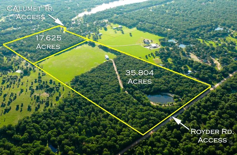Approximately 53.429 Acres directly in the growth path of College Station! -Great ranch-homesite and/or Development Tract -Property is just South of the new Creek Meadows Subdivision and adjoins Woodlake Estates on the East. -Clean rectangular tract with gentle topography and no floodplain. -Great mix of woods and open pasture -Priced at $19,750 per acre. Seller will divide: -35.804 Acres fronting Royder Road ($24,500 per acre) -17.625 Acres fronting Calumet Trail ($24,500 per acre) Directions: -Greens Prairie Trail to Royder Road, South 1/3 mile to Main entrance on left. -Rock road leads through the woods past lovely pond ending at edge of a large open pasture and large manufactured home (4 bedroom with office) in great condition served by Wellborn Water and BTU Electric. -Cross the pasture to the NE corner of the tree line to enter the 17.625 acre tract. The tree line (fenced) is the West border of the 17.625 acre tract, which is heavily wooded and fronts on Calumet Trail. Property has agricultural exemption and is under a non-annexation development agreement with City of College Station.