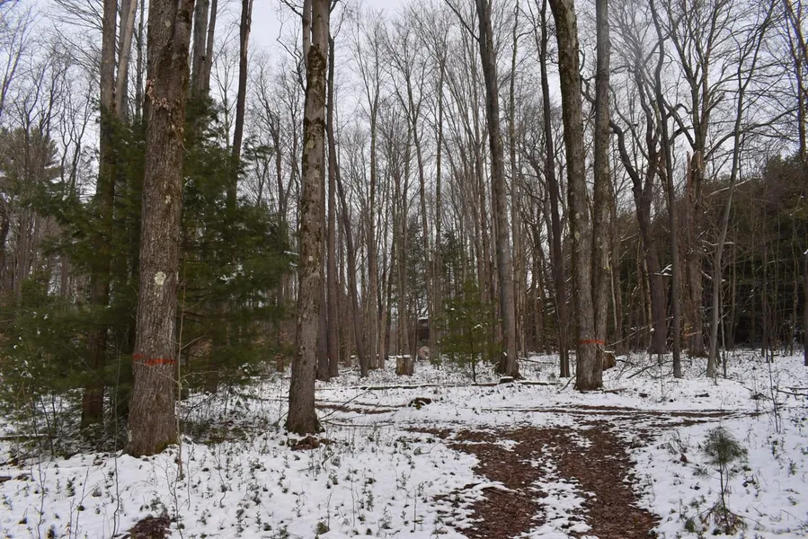 53.73 acres wooded with timber, great access, ATV trails and adjoins Allegheny National Forest for sale. The property is completely wooded with a mix of hard maple, soft maple, black cherry, beech, birch, white pine and more. The north and east sides of the tract have a nice mix of timber areas and pole stands while the southwest section is a regenerated former clearcut area that is attracting and holding deer. The seller currently has marked about 70,000 boardfeet of timber on half the property that will transfer with the property and will not be cut.