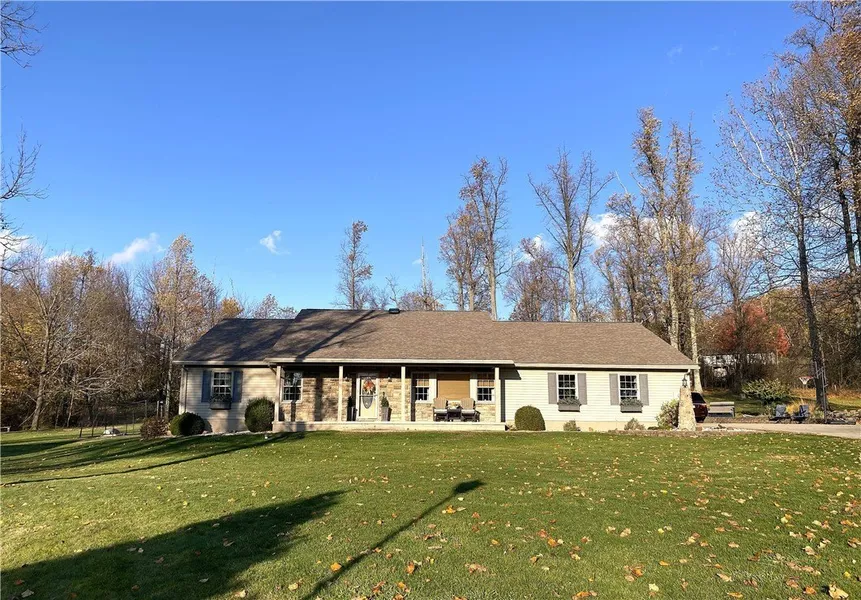Welcome to this exquisite, custom-built ranch home, ideally situated on a beautifully landscaped 0.89-acre lot in Hopwood. This impeccably maintained, single-owner home surpasses new construction with its extensive upgrades and thoughtful design. The home features three spacious bedrooms and three full bathrooms, complemented by an open-concept living area that seamlessly blends comfort and functionality. The kitchen is fully equipped and showcases a generous center island—perfect for entertaining or everyday living. Enjoy year-round relaxation in the screened-in porch and the climate-controlled four-season room. The primary suite offers a custom walk-in closet and a private bath. Upstairs, you'll find an additional bedroom, full bath, and a versatile bonus room ideal for use as a fourth bedroom, home office, or flex space. Additional highlights include a two-car attached garage, a storage shed, and a concrete driveway. This exceptional home offers the perfect blend of style and serenity.