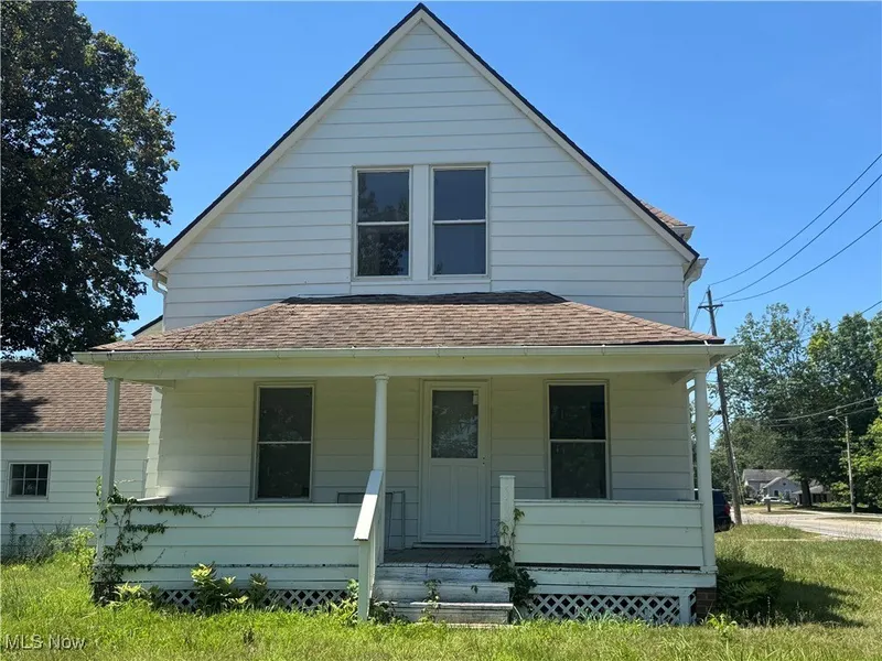 2 Bedrooms Vinyl Cape Cod with attached 2 car garage . Home need updates !