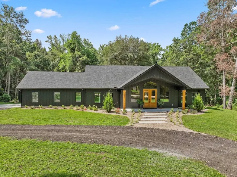 Discover custom craftsmanship in this designed 3-bedroom, 2.5-bathroom home situated on 5.54 acres of picturesque countryside, boasting a striking Tricorn Black exterior with board & batten fiber cement siding. Interior Highlights - - Open and airy floor plan with 9ft ceilings throughout, accentuated by a stunning 12ft vaulted ceiling in the living room adorned with poplar wood beams - - Cozy up by the wood-burning corner stove, creating a warm and inviting atmosphere - - Custom-built poplar wood trey ceiling in the dining room, featuring a gold modern wagon wheel chandelier fixture for added elegance - - LVP flooring throughout the main living areas and tile in bathrooms, offering both durability and aesthetic appeal - - Stay comfortable year-round with a Mini-split Mitsubishi 18K Btu 17 SEER Wall Mount Heat Pump System in the garage (hosting as a livable space, currently used as an office space) and HVAC Amana 3 TON 14.3 SEER system servicing the home - - NEST thermostat and a dehumidifier in the attic - - Kitchen & Bathrooms Highlights - - Chef's dream kitchen equipped with matte white GE Cafe appliances, a commercial vent hood, and Calacatta Gold Royal quartz countertops throughout - - Stylish matte black & gold/brass Moen plumbing finishes and a farmhouse white sink - - Large island (75"x61.5") with cabinets on both sides, open upper shelving, and a custom hood range for culinary enthusiasts - - Custom-built cabinets throughout, including a pantry with wood shelving, ensuring ample storage and organization - - Luxurious bathrooms feature a curb-less shower in the master with a frameless glass enclosure and hinge door, double vanity in both master and guest baths, and high-efficiency dual-flush toilets - - Additional Highlights - - Additional office/room just off the living room - - Custom-built wood shelving in all bedroom and hall closets, providing practical storage solutions - - Functional mud bench with poplar wood accent in the laundry room - - Craftsman-style trim, interior baseboards, and door/window casing add to the home's refined aesthetic - - Convenient pull-down attic stairs in the garage for easy access to storage - - Exterior Highlights - - Two-car garage with a 7ft H opening, glass panels, and a sleek black metal door, complemented by garage floor epoxy - - Professionally landscaped yard with cedar wrapped posts and a U-shaped driveway featuring asphalt millings - - Covered and epoxied front porch offering a welcoming entrance - - Energy-efficient with Pella lifestyle wood-clad casement windows and open-cell foam insulation throughout - - 5 double flood lights on all home corners and 3 weatherproof exterior outlets - - Additional amenities include a 3-car concrete driveway pad, and a 2023 Roof | HVAC | Septic | Well | Water Heater | Dehumidifier - - Outdoor Living Features - - Enjoy outdoor gatherings on the expansive 28'x28' backyard deck, overlooking the quiet landscape and custom chicken coop with a 4-bed fenced-in garden - - Added storage and workspace with a 30'x30' pole barn featuring a metal roof, built in 2024. This exceptional property, nestled on a private road with HOA, offers a blend of luxury, comfort, and tranquility. Schedule your private tour today and experience the epitome of small town living. Don't miss the opportunity to make this extraordinary custom estate your new home!