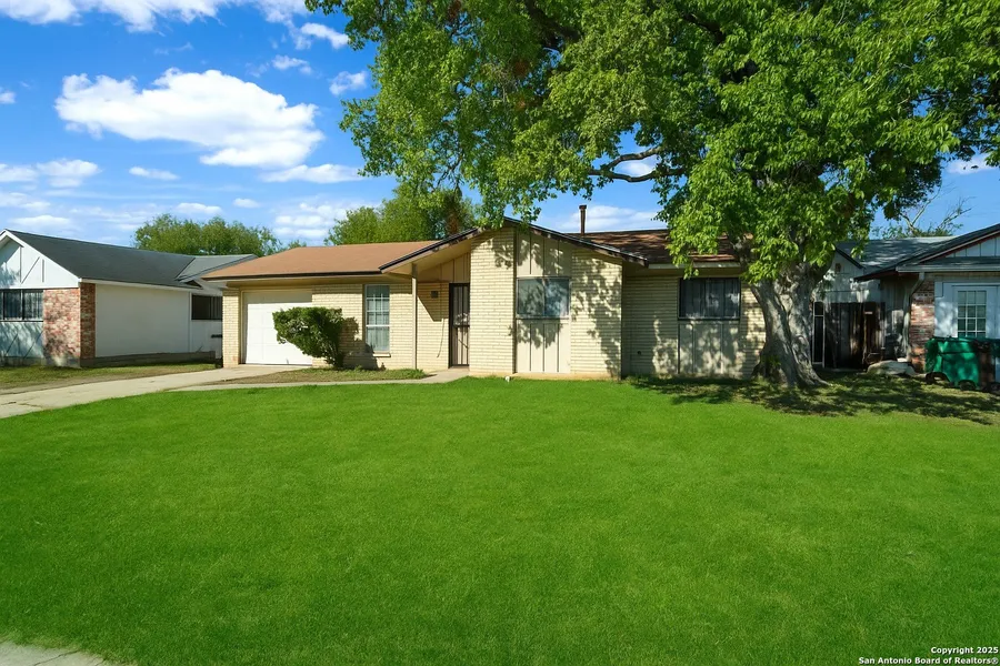 Step inside this charming one-story home and instantly feel at ease. The inviting living room welcomes you in and flows effortlessly into the open kitchen and dining areas, perfect for gathering with friends or enjoying a quiet evening meal. The updated kitchen features beautiful cabinetry and upgraded laminate countertops, offering both style and functionality for daily living. With no carpet in the main living spaces, cleaning is a breeze, while the bedrooms feature plush carpet for added warmth and comfort. Enjoy year-round comfort with ceiling fans throughout, and appreciate the convenience of an in-garage laundry area that keeps chores neatly tucked away. Step outside to a spacious backyard, ideal for weekend barbecues, pets, or creating your own garden retreat. A large patio provides the perfect spot for relaxing or entertaining outdoors. Move-in ready and full of potential, this home offers the perfect blend of comfort, functionality, and value in a welcoming neighborhood. Just minutes from your door are daily conveniences and lifestyle perks - groceries at H-E-B on Austin Highway make meal prep easy, while Kardon Park offers open lawns, walking trails, and picnic spaces for outdoor fun. Families will appreciate the nearby North East Independent School District campuses, rounding out a community-friendly setting that combines suburban comfort with city convenience. Come see why this home should be yours!