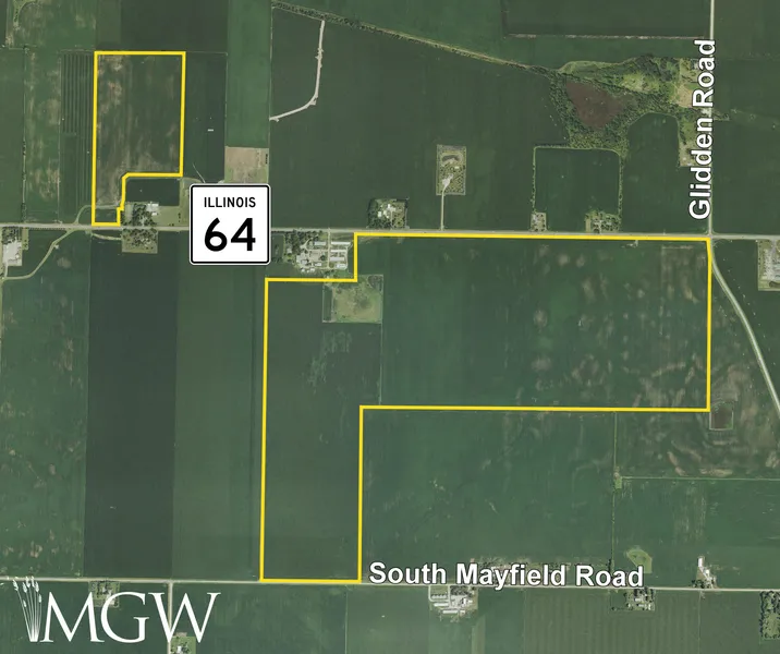 Frontage: There is approximately 1 1/8 miles of road frontage on Illinois Route 64, 1/4 mile on South Mayfield Road, and 1/16 mile on Glidden Road.