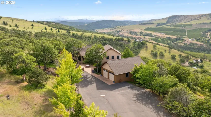 Set on 9 private acres, this custom Columbia Gorge estate brings together modern Northwest design and jaw-dropping viewsMt. Hood, Mt. Adams, the Columbia River, and rolling orchards all laid out like a living landscape painting. The home itself? Warm, intentional, and full of light. A gourmet kitchen made for slow mornings and dinner parties alike, a main-level primary suite with floor-to-ceiling views, and rich natural finishes throughout that nod to the beauty outside. Every detail feels thoughtful, from the handcrafted woodwork to the generous windows that let the landscape do the talking. Theres space for everyone herewith detached guest quarters for visitors or your next creative project, an oversized two-car garage, and a separate shop for gear, tools, or whatever big ideas youre cooking up next. Whether youre after a quiet retreat or a basecamp for all your Gorge adventures, 5331 Dolan Road is the kind of place that makes you take a deep breath and thinkthis is it.