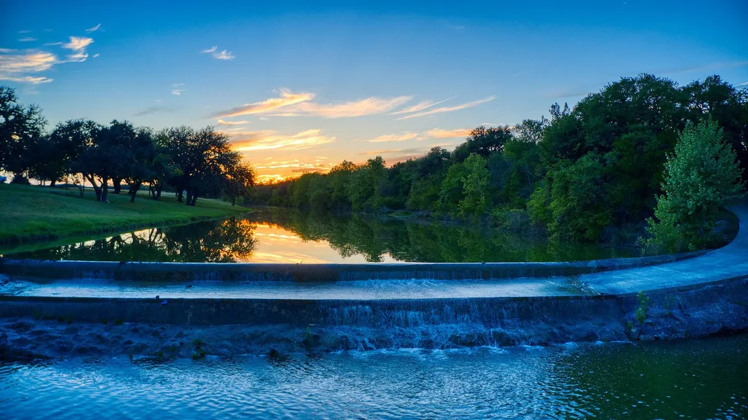 Located between Blanco and Luckenbach, this ranch showcases over a mile of the Blanco River. This 195 acre Hill Country gem includes a river house, open pastures and oak studded slopes cleared of underbrush. Hilltop vistas look down on the pecan orchard on the property and beyond to distant horizons over twenty miles away. You turn off the country blacktop onto the paved driveway your vehicle ducks into the shade of the riverbed timber as you swoop down into another world. As you pull into a substantial concrete dam, you are compelled to stop by the sheer magnitude of the scenery opening around you. Your eyes turn first to the slender lake of crystal-clear water above the dam, then sweep slowly across the property past huge trees, green pastures, round hills, and finally to the river gurgling across the rocky bed below the dam. And it's only the beginning. Crossing the river and ascending the gentle slope of the bank you turn upstream. Ahead your eyes reach a quarter mile across an open, level pasture of green grass. Now you drive right up to the front door of the river house, ready to welcome you. Windows front and back take full advantage of that rare and beautiful view. From here you have choices. You can drive or hike up the river where you'll find another dam forming a quaint pool. Or you can ascend the gentle slopes leading to the higher ground. If you choose to drive higher you'll pass the pecan orchard of 100 trees then wind among oaks openly spaced on the slopes. Arriving at an engineered architectural site ready for your dream home, you'll take in an almost 360-degree panoramic view that you will not soon want to leave behind.