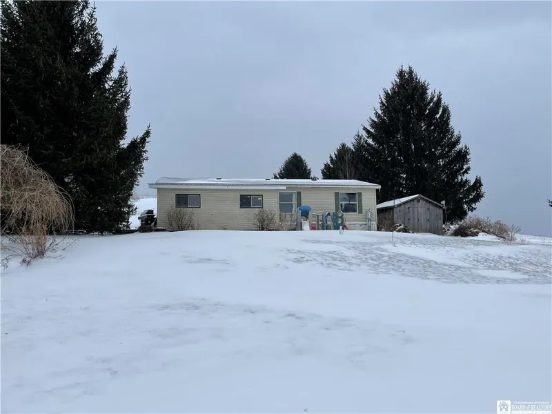 Country home with great views. Well maintained 1995 manufactured home with an addition on 1.6 acres in the Cattaraugus -Little Valley School District. The spacious mudroom with large closet doubles as an office. A few steps up into the main home and you are in the living room with cathedral ceiling. Open to the kitchen with lots of storage space and eat-in dining area with a door leading to the back deck. To the left is laundry room and master bedroom suite with a full bath and double closet. On the other end of the home is two more bedrooms with closets and carpet and a second full bath. Nice size yard with plenty of room for the littles or pets to play. Great area for a garden too. The shingle part of the roof was done in 2019 and the metal was done in 2018. There is a large shed that will stay and Little Valley Electric is a bonus.