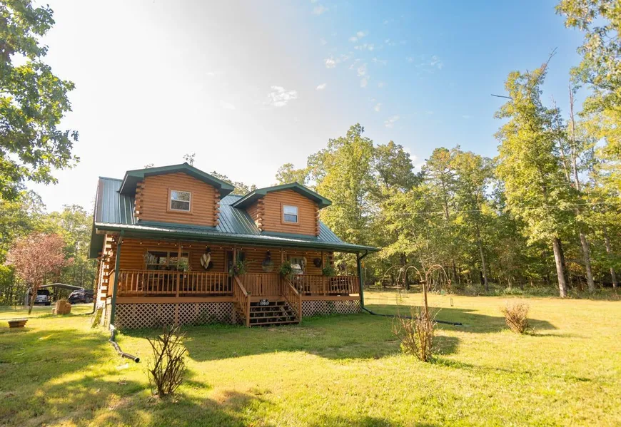Beautiful log home in park like setting, situated on a private, surveyed 10.5 acres. Home boasts a gorgeous front porch (bring your rocking chairs), deck in the back, open floor plan, 3 beds/2.5 baths, with potential for 4th bedroom, office, or family room in the open loft. Small pond on the property draws a ton of wildlife, with deer presenting almost every day. 2 car carport and storage shed stay. Located in coveted Ellsinore school district.