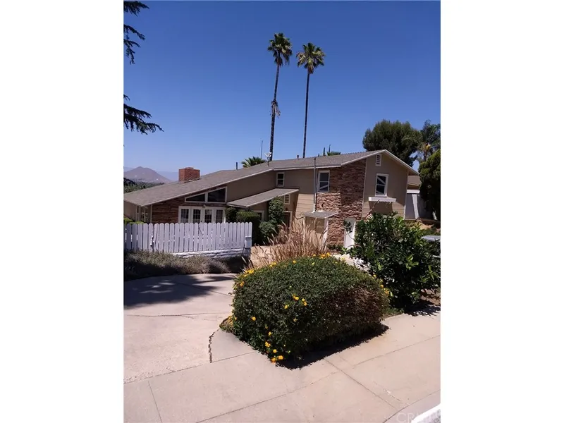 Beautiful, Lush view of Santa Ana River Trail/De Anza Trail!! Sunsets over Jurupa Hills are spectacular. Fenced vacant land on bottom of rear slope is included in acreage. Also, across the Santa Ana River Bike Trail there is said to be an Artesian Well which is within the property... Master bedroom is located on bottom floor. Two bedrooms plus small bonus room located upstairs. Optional home entrance located next to 2nd upper driveway. Minor TLC