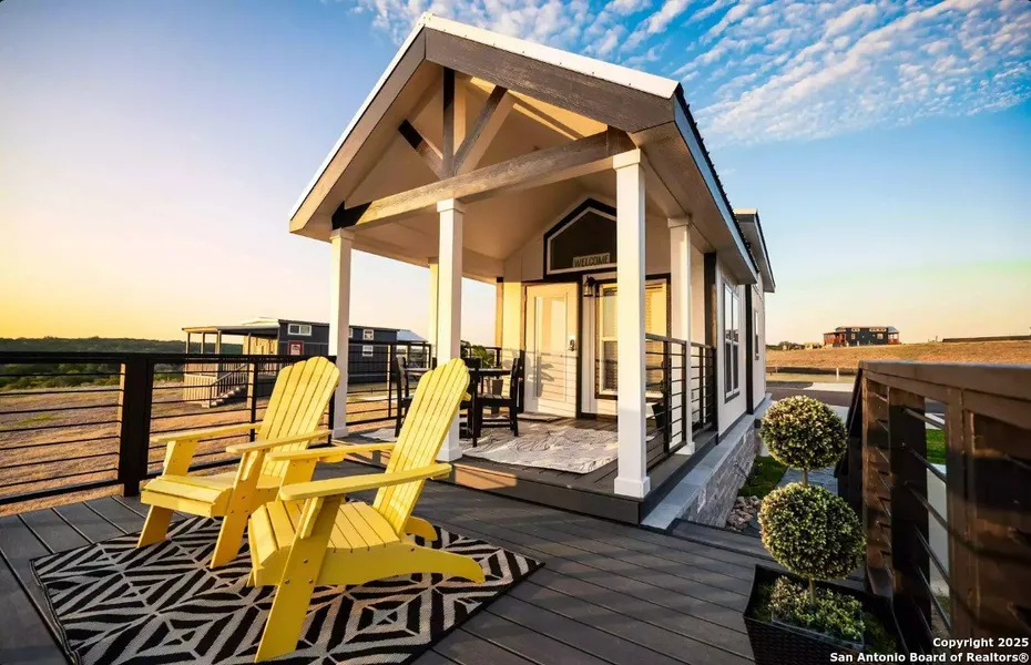 Nestled in the heart of the Texas Hill Country, this tiny home enjoys breathtaking hilltop views out on the expansive deck, a bedroom & bathroom downstairs with a sleeping loft upstairs. All the amenities of home are found in the kitchen so just come and enjoy! Unwind by the resort's world-class infinity pool. The resort offers an abundance of amenities and was voted Best Luxury RV & Tiny Home Resort in Texas by USA Today in 2024. Use your home as a get-away or earn income with the on-site rental program when you're away. This ideally located resort is just outside of Fredericksburg famous Main St., 2 minutes from Luckenbach & 5 minutes away from the TX Wine Trail. You will love owning here!