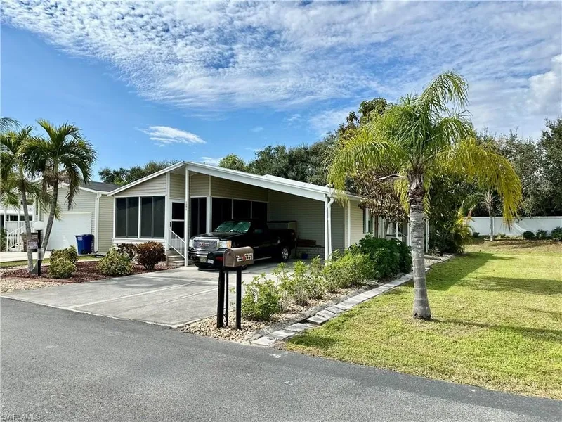 Welcome to this beautifully maintained 2 bedroom, 2 bath home with a versatile den, perfectly located in a highly sought after 55+ gated Fort Myers community where you own your land. This spacious residence features an open & inviting floor plan with abundant natural light throughout. One of the highlights of this home is the bright and airy sunroom, where you can relax with your morning coffee or unwind at the end of the day. Residents enjoy a quiet, low maintenance lifestyle with access to community amenities and social activities. Move in ready and designed for comfort- this home offers the perfect blend of functionality and charm.