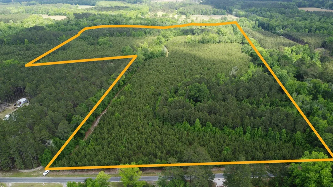 The land boasts 30 acres of well-established planted loblolly pine, providing future timber income, and is complemented by natural hardwood pockets that offer excellent wildlife habitat diversity. A hardwood bottom along Little Swamp Creek defines the southeastern boundary, adding character, seasonal water flow, and a rich ecosystem to the landscape.