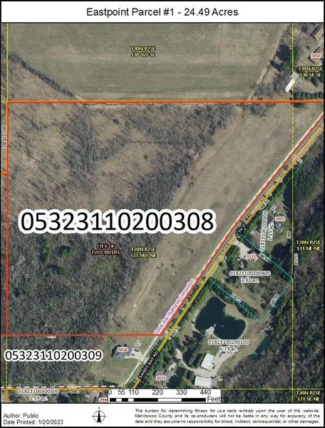 Developable 54.863 acres on 3 total parcels of land near Point Beach State Forest contiguous & just north of Sandy Bay Highlands Subdivision in the City of Two Rivers. The Rawley Point nature trail flows along the east edge of the 2 largest parcels. The 2 largest tracts are 29.23 & 24.49 acres respectively and are accessed off Sandy Bay Rd and 1 lot off Pierce Ct. All 3 parcels provide both developmental and/or recreational possibilities. Point Beach State Forest runs east across the road from this land. All located within the City Limits of Two Rivers. Excellent land for building, developing, and recreational use. Zoned Residential Use City Two Rivers.