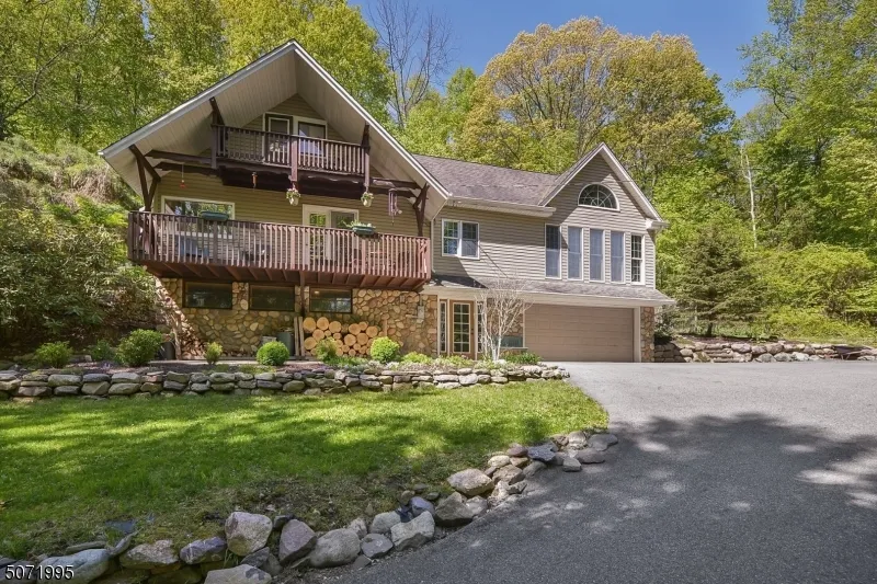 Welcome to this Private Mountain Retreat! This custom home sits on about a 2 acres wooded lot. Entering the front door brings you to a foyer with access to the garage and den w/ wood burning stove. Hardwood floors through out the house warms the entire space. The 1st level of living displays a wall of windows over-looking the yard. Open concept custom kitchen/DR with access to the balcony. 1 BR and full bath are on the main level of living. The sliders lead you to the spacious back yard w/paver patio, hot tub and salt water pool w/ trek deck. 2nd level over looks the main floor has 3 BR's and a full bath with jacuzzi tub with standing shower. Storage galore with 2 sheds. Two of the bedrooms have private balconies. Close to hiking trails, reservoir and boating.
