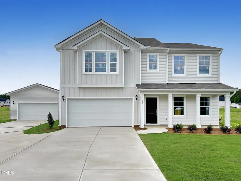 This popular Russell plan offers the perfect blend of comfort, style, and functionality. With a highly sought-after 2-car detached garage in addition to the attached 2-car garage, this home is a dream come true for car enthusiasts or anyone needing extra storage space, totaling a 4-car capacity! Inside, you'll find 4 bedrooms and 3 full baths, including a guest bedroom with a full bath with a 5' shower on the main floor, ideal for visitors or multigenerational living. The open-concept eat-in kitchen is a chef's dream, featuring cabinets with crown molding, a large island with bar seating and quartz countertops, a walk-in pantry, and a cozy breakfast nook. The kitchen flows seamlessly into the spacious family room, filled with natural light and offering easy access to a 10' x 12' patio, perfect for outdoor entertaining. Upstairs, the luxurious primary suite boasts a tray ceiling, a spa-like bath with dual sinks, a tiled shower, water closet, linen closet, and two generous walk-in closets. Two additional bedrooms-each with their own walk-in closet, share a full bathroom. A laundry room and a large loft space complete the second floor, offering even more room to relax or entertain. Located just 10 minutes from downtown Angier, you'll enjoy charming local shops and restaurants with quick access to Raleigh and Interstates 40 and 95 for easy commuting. **ETA SEPT! Photos are for Representation! ASK ABOUT OUR INCENTIVES!