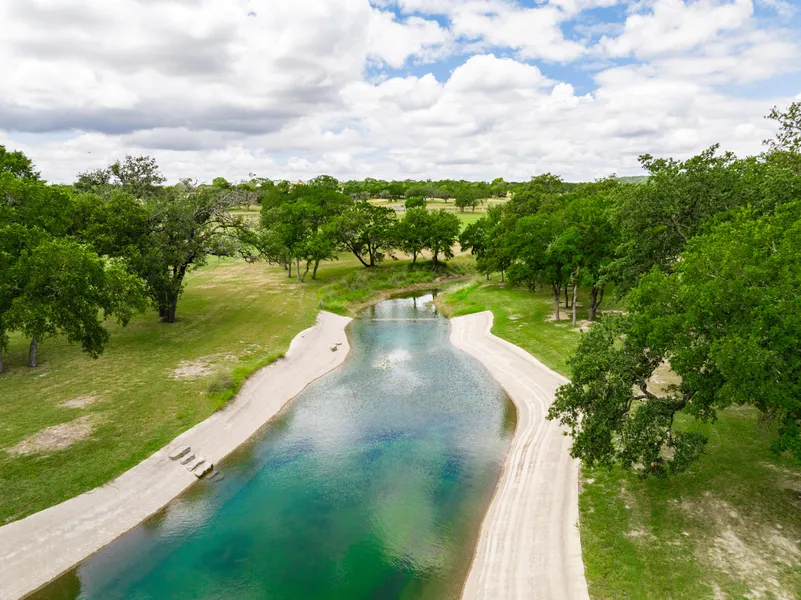 Bluff Creek Ranch is turnkey and thoughtfully improved for full-time living or weekend retreat. The 3,801 square foot main residence showcases custom woodwork throughout, with handcrafted finishes that reflect Hill Country artistry and quality. The home is supported by two water wells and a whole-property backup generator capable of powering the estate for up to 14 days, ensuring uninterrupted comfort.