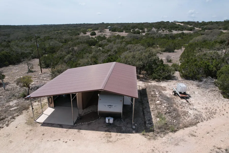 Amazing Exotics are seen from the campsite at every visit. The campsite includes a barn and covered parking with a very clean RV. The RV is hooked up to water, power and septic. The barn has a chest freezer, a full size refrigerator and washer and dryer that will all convey. There is also a Polaris to get you around the numerous trails throughout. There are 2 blinds and multiple feeders and 3 water stations that also will convey. The private well supplies water to the campsite and there are 3 feeding stations set up for the wildlife. Every feed station has a water catch as well to bring the animals in. There is an area adjacent to the camp with amazing views that could be a great build site if building your dream home is a goal. Wildlife valuation is established to make taxes low. This property is nestled 12 miles off hwy 41 so there will be no road noise to disturb the peace. The property sits inside a 1200+ acre high fenced exotic game ranch in Edwards county with fallow deer, red deer, axis deer, and blackbuck. The native game is superb as well with loads of turkeys and exceptional hill country whitetail. There are a few hogs as well. This diverse mix allows for year round hunting. The development is end of road and that offers privacy and seclusion and is east of Rocksprings so quicker to get to from Austin, San Antonio, or Houston. The last 2 miles is an easement road that can be traveled in 2WD, and while doing so, it's best to go slowly and enjoy the views- you're almost there! Inside the gated development, all roads are chip sealed and access is with a remote or key pad so no need to ever leave your vehicle.