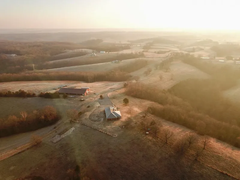 This picturesque farm sits off of blacktop, has beautiful views, a live creek, several ponds, deep mature timber with lots of deer and turkey, pastures on the tops of some of the ridges with a lot of extras to enjoy. As you turn off the blacktop you are met with a long, paved driveway with giant oaks leading you into the property. Once past the gate, you have access to 540 +/- gorgeous acres that have a true Ozark feel. A 4 bedroom, 3 bath brick house spanning 2,150+ square feet with a giant sun room and incredible views anchor the farm. A wood-burning fireplace, big living room and dining area create lots of space to call home. Adjacent to the home sits a giant 150'x80' barn that gives you plenty of area to store equipment. As a bonus, inside the barn also has a portion framed out with living quarters. As you enter further into the property, fenced and cross-fenced pastures sit atop the ridges with quality grass and water available from lines running to different paddocks. There are several big, deep hollows on the property that hold tons of deer, turkeys, and lots of morels in the spring. With a trail system in place you can utilize most of the property, helping you have access to the all the great things this farm has to offer. This stellar Ozark property literally has it all and had several nice bucks taken off the property this fall. The seller is willing to split and more acreage is available if needed. Shown by appointment only. Call Clayton Campbell at (620) 687-2789 for a private tour of this incredible property!