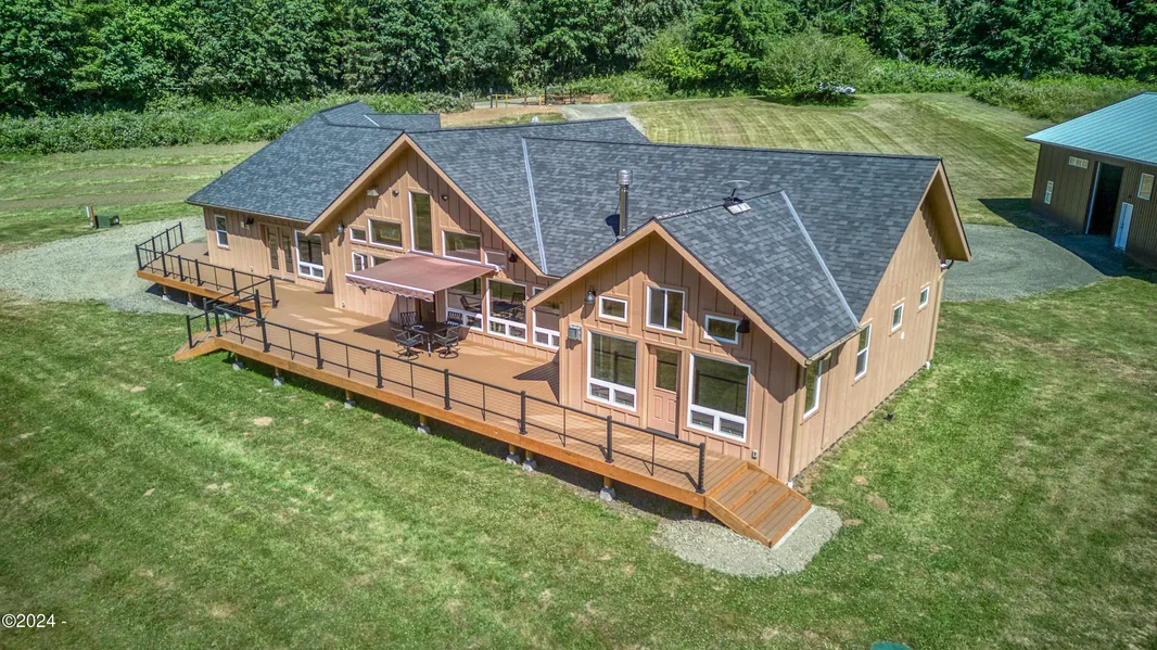 ACREAGE, BIG ROCK CREEK! This spacious home offers 3 en suites with main level living, open floor plan and gorgeous views from every window. Owner just installed a top of the line custom deck with awning, an electric gate w/ keypad, lights & cameras for extra security, approx.$75K. Take friends and families to your very own campsite with fire pit, picnic table and a beautiful serenity bench overlooking the waterfalls. Big Rock Creek runs thru the property, it's full of trout, steelhead, and salmon runs. If you love hiking, fishing, hunting, camping, farming and more here's your chance to own 95 acres of paradise. 36'x60' Ag. building can be used as a shop/barn you decide! This property has two custom built bridges that will withstand the load of commercial trucks.