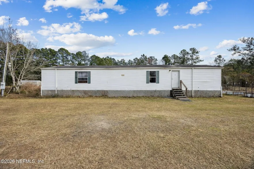 Situated on 1.77 acres, this 2-bedroom, 2-bath mobile home presents a great opportunity for a buyer looking to build equity and customize over time. The home is clean, livable, and functional, featuring window unit A/C and a practical layout. Some flooring is soft and the property is priced accordingly, making it an ideal fixer-upper or starter home with plenty of potential. 15 plus fruit trees planted on the property: two peaches, two olive trees, one citrus one pear 1 fig tree 14 blueberry plentiful wild blackberries and two thornless varieties of blackberries Financing Note:The property will not qualify for VA, USDA, or FHA financing in its current condition. Seller may consider completing required repairs to meet loan requirements with an increased purchase price, if agreed upon in contract. With nearly 1.77 acres, there is ample space to enjoy privacy, future improvements, or expansion opportunities.