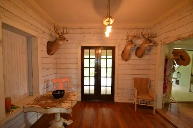 The main house was built in 1912 the same year that the mighty Titanic sunk. After it was built, it was lived in by the McDonald family out of Santo, Texas and was known at that time as The McDonald Mansion. It was then left abandoned some years later. 25 years afterward, the current owner rescued the home and had it moved to its current location where it has been given the utmost TLC. Kept mostly in its original state, this home surely radiates nostalgia from every crack and crevice! The wood slat walls and the hardwood floors will surely bring back memories to some and create memories for young and old alike. After entering the home via a large wrap around front porch then entering in the front door, instant character radiates. The front living room is roomy and the ceiling fan is centered inside of an antique chandelier base. The mini stairway that leads to the upstairs bedroom is located here and is abound with ornamental railing. The second living room is located at the rear of the home and overlooks the large back porch and the Paluxy River. The kitchen is true to its time and comes complete with a vintage gas stove! The upper cabinets are outfitted in glass panes so displaying your antique dining wear will be ideal here. The dining room is grand enough to host many family members and friends and theres a bonus-type room that is between the dining room and the kitchen that houses a beautiful set of French doors, which allow access out to the relaxing back porch. The master bedroom has a private full bathroom and also has a lovely set of French doors that lead out to the porch that overlooks the Paluxy River. Imagine sleeping with the windows open after a rain! Decorated in a romantic theme, the main bathroom is also true to its time in size and features two decorative arches that are built into the wall. A claw-foot tub is also present here. In my opinion, this home would be the perfect start to a bed & breakfast! With three bedrooms, one could house guests in the two remaining bedrooms. Also it would be a perfect setting for having hordeuvers and beverages before and after a wedding, gala, business meeting, family gathering, etc. There are so many possibilities!