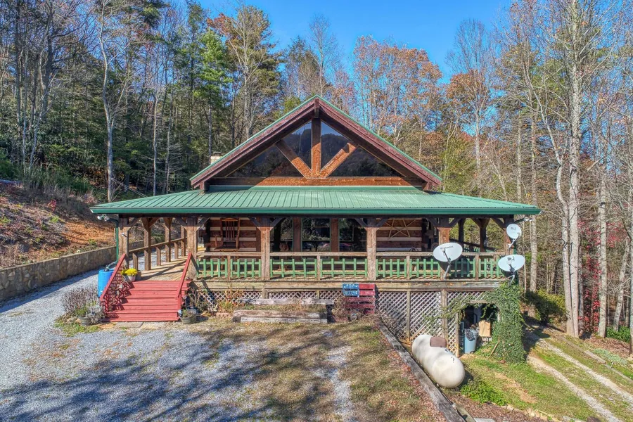 BEAUTIFUL MOUNTAIN 2,940SF LOG CABIN in the Appalachian Mountains of East Tennessee with hand hewn log timbers. Three bedrooms, three bathroom chalet in the mountains. 20ft cathedral ceiling in the living, with stunning window, open concept kitchen, dining and living space with granite countertops, custom cabinets, sliding drawers, new faucets. Log beams, hardwood floors and ceiling accommodate the structure. Main floor bedroom and bath and washer/drier hookup. Master bedroom and bath jetted tub in the 700sf loft with vaulted ceilings, and extra sitting space on the loft to over look the living area or take-in the view from the featured windows. This home has a 360' wrap-around porch, 1/3 screened in and a spacious deck for fire-pit enjoyment. Great area to add a hot-tub spa. Lower-level has a second kitchen, bedroom, bath and office space in addition to den and wood-burning stove, separate entrance, porch and access to five acres that surround this property on Viking Mountain Road, complete with a perfect mountain creek for exploring. Just a few miles from North Carolina and the Appalachian Trail just 1/2 mile off Hwy 312. HEAT pump installed in 2012. Propane tank conveys with purchase. Wood burning stove in the basement that can heat the house. COOLED with heat pump and central air. SPRING WATER provides water for all uses, and two water-heaters for this three-baths, kitchen and laundry use. New spring house is under construction. Buyer and Buyer's agent is responsible for all measurements and home inspection detail. Call Steven Harbison, Realtor at 423-620-1528.