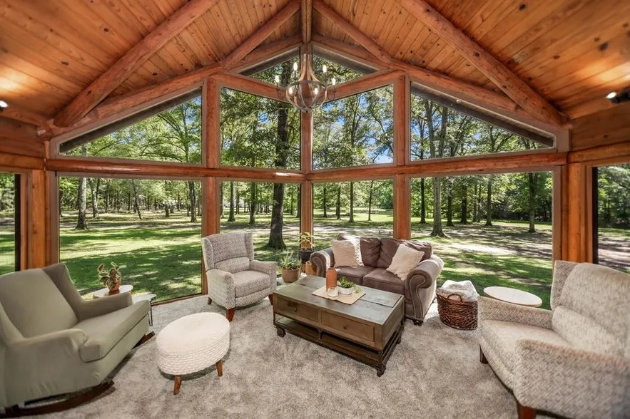 This stunning luxury log home offers a warm, open-concept design with breathtaking three-story vaulted ceilings and walls of windows that flood the space with natural lightespecially from the third-floor skylights. Set on 7 private, gated and fenced acres, you'll find something for everyone: a peaceful spring-fed fishing pond, a large shop/barn, attached 2 car garage and detached 3 car garage! Inside, the gorgeous exposed rustic-cut logs and a striking solid oak spiral staircase gracefully connects all three levels. Two spacious living rooms invite cozy gatherings, while the top-floor game room offers the perfect escape for fun and relaxation. And don't miss the enclosed hot tub room designed for year-round enjoyment with ventilation. There's also a separate APARTMENT with private entry, ideal for guests or multi-generational living. This one-of-a-kind log home is where comfort meets adventure! Country living just outside of the city limits w/food and grocery deliveries available!