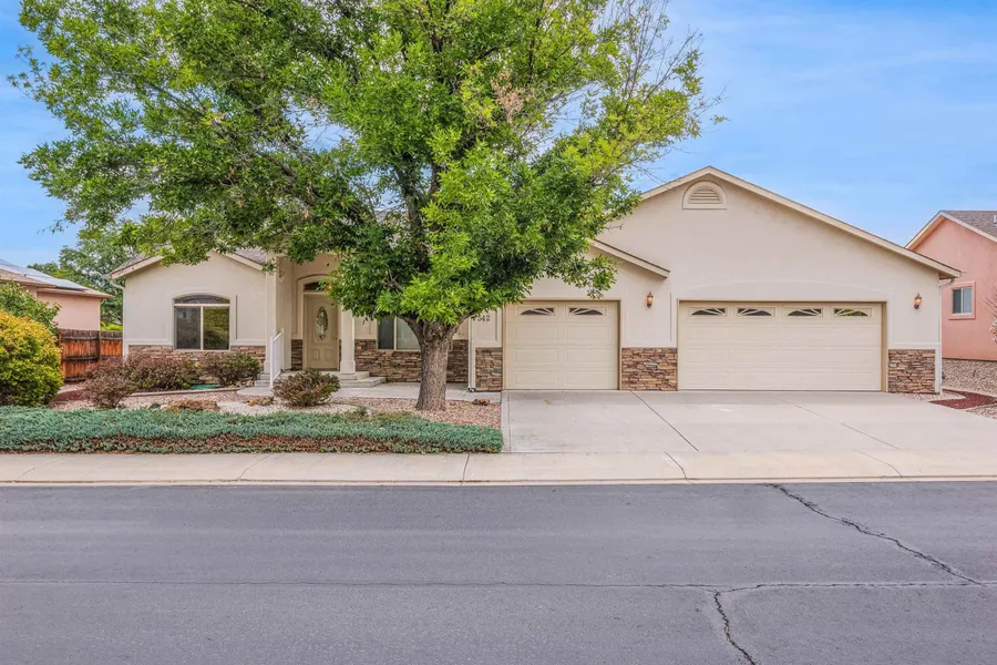 Located in the Redlands area of Grand Junction, this single-level home offers a 3-car garage, open layout with vaulted ceilings, and a double-sided gas fireplace connecting the living room to a flexible guest room or office with French doors. Natural light fills the home through transom windows and skylights. The kitchen includes stainless steel appliances, an eat-at bar, a trash compactor, and both formal and casual dining areas. The primary suite features a bay window, walk-in closet with built-ins, and a 5-piece bath with a seated vanity. New LVP flooring in the living and guest rooms and new carpet in the primary. The covered patio overlooks a xeriscaped yard designed for minimal upkeep-ideal for buyers seeking an easy, lock-and-leave lifestyle. Additional convenience features include grab bars in the primary suite, a laundry/mud room, and easy garage entry. Located just minutes from top-rated schools and golf courses, trails, shopping, and the Colorado National Monument. Nearby outdoor trail options such as: Lunch Loops/Tabeguache, Monument Canyon (Colorado National Monument), Connected Lakes, and the Colorado Riverfront Trail.