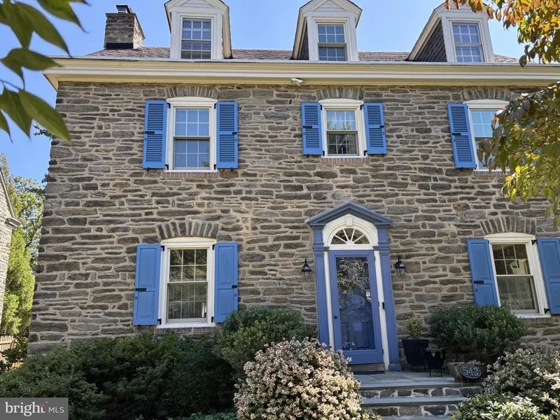 A classic home nestled in leafy, historic Mount Airy, this stately stone colonial will not disappoint you! A welcoming foyer opens to a gracious living room on one side with lots of windows, hardwood floors, and a gas-powered fireplace to keep you warm and cozy on cold winter nights. On the other side of the foyer, you'll find the spacious kitchen, complete with a large work area, and a dining space large enough to host a crowd. French doors provide separation if quiet is needed. Laundry and powder rooms sit beyond the kitchen, as well as back door access to the brick patio, garden, garage, and enlarged parking area. Head upstairs to the second floor to find the primary bedroom and two additional bedrooms. Hardwood floors continue throughout the house, including all the way up to the third floor, which hosts two additional bedrooms and a bathroom complete with claw foot tub! This charming home is close to the Allens Lane Art Center,Weaver's Way Coop, Chestnut Hill and is less than a half mile to the Carpenter's Lane train station.
