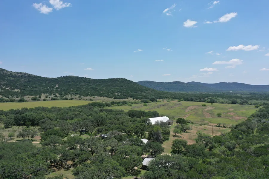 Vegetation-Terrain: In the heart of the Edwards Plateau, this ranch contains a good variety of brush species and hardwoods common to the area. Brush species include: agarita, huisache, twist leaf yucca, white brush, persimmon, mountain laurel, and cactus. Both shin oak and ash juniper are present throughout. Large Live oak trees are found throughout the property, along with large cedar trees. About 60% of the ranch consists of good bottomland, with the remaining acreage being in the rolling hills. Two fertile fields, one 21 acres and the 13 acres, lie in the valley of the ranch. Elevations roll from the rich low-lying land at 1,450 to 1,800 on the hilltops; this elevation change provides stunning Hill Country views.