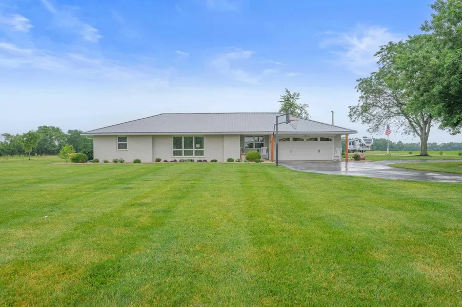 Immaculate, completely updated home in the country on 3+ acres! Daleville Schools! Impeccably kept - brick exterior, metal roof, very well landscaped and groomed lawn! Location is perfect for those who need quick access to I69 or SR 67 to commute to Anderson or Muncie! This beautifully updated ranch features 3 bedrooms, a large Living Room, and a separate Family Room. The kitchen is an absolute gem! Features include gorgeous knotty alder cabinetry with details such as crown moulding, a pull-out wastebasket, and a pantry cabinet with pull-outs. Countertops are quartz and all of the stainless steel appliances stay, too (upgraded gas range). Both bathrooms have been updated with the back bath being completely renovated and featuring ceramic floor tile and completely ceramic tiled shower. Off the kitchen is a large utility room. Outside, there's a concrete patio and a great above-ground pool with permanent wood decking. Misc. details reported as follows: all interior doors and jambs replaced throughout; gas furnace, central air unit, and water heater all approx.5 years old. Floor in the garage was treated with industrial grade product with quartz and the mounted heater stays. Age of pool is approx. 10 years old and the liner was replaced 2 years ago. Nice pole barn is 30 x 24 and completes the list of everything you're looking for! Note: Wood stove in pole barn is reserved and will be removed prior to possession; pipe and hook-up will be left in place so another stove may be installed if the new buyer wishes to add one after closing. Seller reserves shelves in Fam. Rm. and shelves & decorative sign in back hall bath. Power sprayer in attached garage reserved. Note: Square footage per measurements taken from previous appraisal. Buyer to rely upon own measurements.