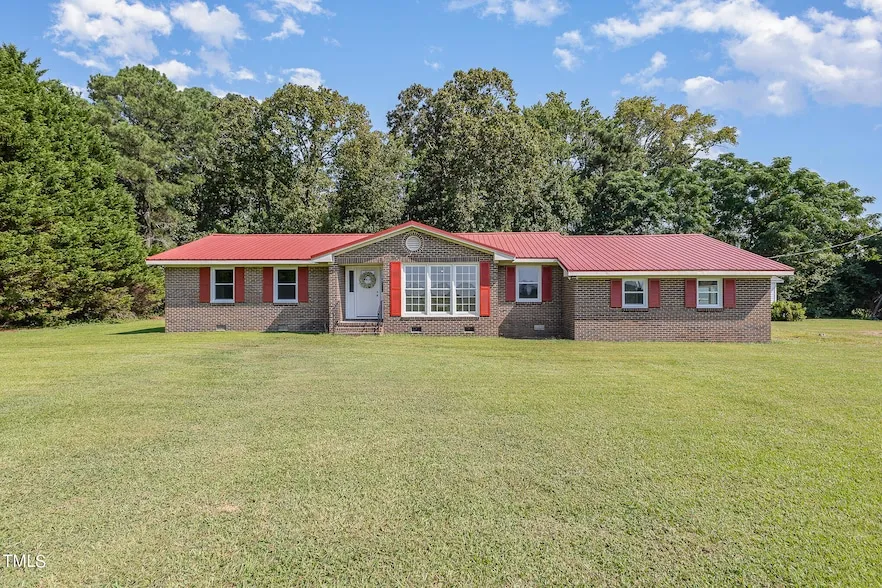 Spacious brick ranch home. -- 3 bedrooms; 2 1/2 baths; garage was updated to add huge bonus room; interior painting; new floors; new vinyl windows; main bathroom updated; metal roof; septic & HVAC & well pump was redone in 2023. Additional studio apartment is not in sq. ft (576 sq. ft ) and not represented by sellers...needs work. Washer, Dryer and Refrigerator conveys. Tobacco Barn in back was moved there and could have lots of potential. No HOA or restrictions. 2 acres...bring us an offer!