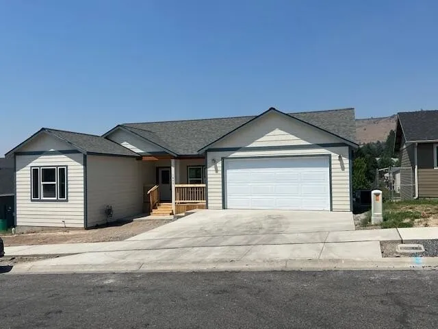 New construction located in a newer subdivision! Featuring an open floor plan with 3 bedrooms, 2 bathrooms, and 1668 sq. ft. Home features custom wood cabinets, stainless appliances, large laundry room with pantry, and some vaulted ceilings. Nice primary suite with big walk-in closet, soaking tub, and double sink vanity. Laminate floors throughout with gas forced air heat and AC. Great deck and views of Hogs Back. Home will be fenced with no landscaping.