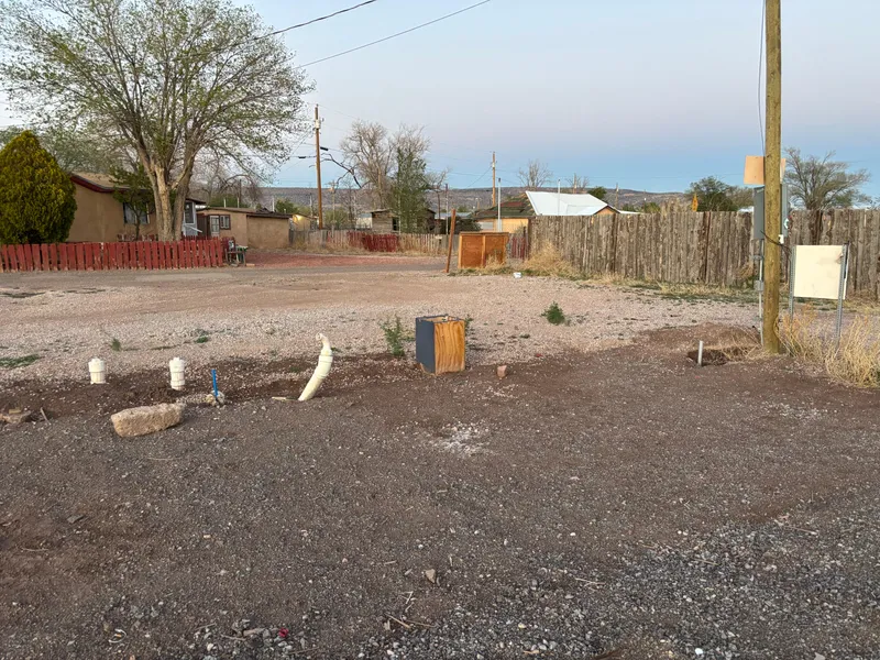 land has 2 electric meters, 2 gas meters, 2city sewer inlets, 2 city water meters, paved street,