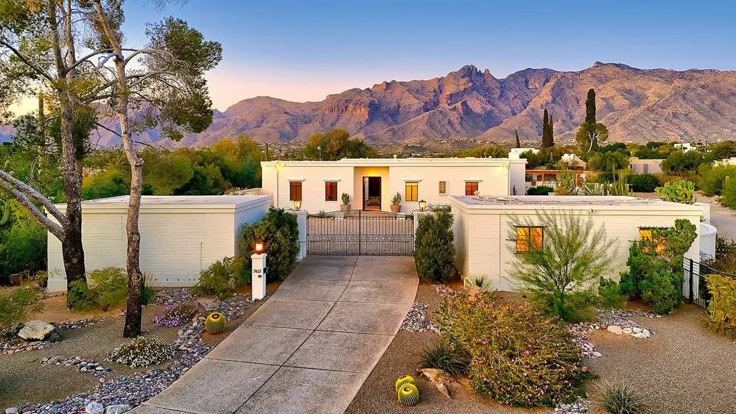 Historic Tucson Estate: 5453 N. Camino Real, Tucson, AZ Located in the Old Catalina Foothills, the distinctive property at 5453 N. Camino Real is a true gem, reflecting a rich architectural heritage and history. As you arrive, the driveway brings you to a gated and walled parking court forming a private and secure compound filled with lush desert plantings. Set on nearly two acres, the main house is constructed from traditional mud adobe brick and spans 4,508 square feet, featuring three spacious bedrooms, each with its own ensuite bathroom, and an additional half-bath in the guest wing. There are an additional 2 bedrooms and full bath in the separate guest house spanning 591 square feet.