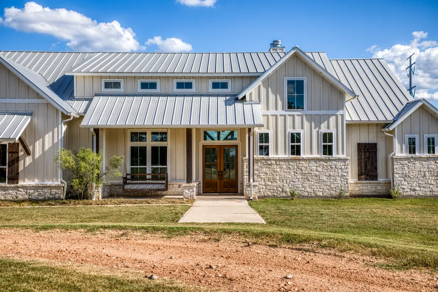 Nestled on 30 acres in the rolling hills of Austin County, this luxurious estate offers a perfect blend of natural beauty and modern comfort. The property boasts mixed soils, diverse tree coverage, and multiple stocked ponds, making it a peaceful countryside retreat. The custom-built home features elegant finishes, an open floor plan, a true masonry stone fireplace, and large windows capturing stunning views. Each bedroom includes an ensuite bath, while the sprawling covered porch is ideal for relaxing and enjoying the landscape. A designer razor-edged pool completes the outdoor living space. Additional amenities include a garage apartment for guests or additional living quarters, a spacious 4-car garage, and a large workshop for projects or storage. Ideally located between the picturesque towns of Round Top, Brenham, Fayetteville, and Bellville, this property combines rural tranquility with easy access to nearby attractions, offering a rare opportunity for luxurious country living.