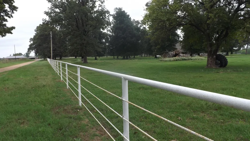 This property also is improved with 30 x 60 metal building; Barn Master 36 x 36 horse barn with 6 stalls, isle way and 6 outside pens; 60 x 100 hay barn; 20 x 100 pipe/metal covered hay or equipment storage. There is an irrigation well (1,000 deep) pumps 350 g.p.m, 24 hours with 20 drop down, 6 5/8 casing, 4 sub pump. The irrigation pivot is a 2001 Valley 5 stand (1,070) and a Duetz 61/4 pump w/3phase generator. Pond is 17 feet deep. The balance of the farm is in cropland and very good Bermuda grass pastures and has very good perimeter and cross fencing.