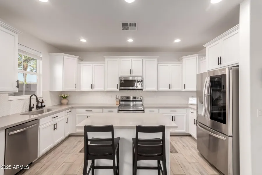 Amazing $50,000 PRICE DROP on this stunning Home located in Cadence! Enjoy the fantastic location at end of street w/no neighbors behind w/easy freeway access, close to schools, shopping & more. The Cadence Community Center features a large pool w/waterslides, large hot tub, tennis courts, gym & more, elevating your enjoyment of this beautiful home. The 2,497 sq ft floor plan is open & inviting w/natural light throughout. 4 Bed/3 Bath w/Jr. Suite on Main w /dual closets. Kitchen features Quartz countertops & herringbone tile backsplash. Primary Suite boasts a spacious walk-in closet, & private ensuite w/dual sinks & great storage. Large Bedrooms ALL w/walk-in closets. Designer details throughout. Low-care landscape & quaint backyard patio, add to the enjoyment of this great home!
