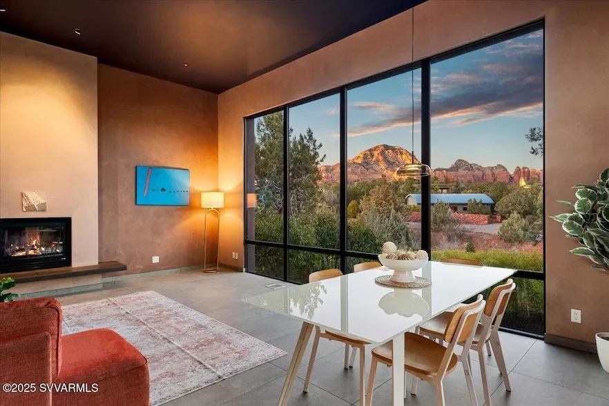 Custom home designed w/beautiful attention to detail, exquisite tile work, & low to no volatile compound materials. Light, bright, artistic, open, & extreme pride of ownership. Walls are hand dyed clay plaster. Kitchen counters upstairs & downstairs are tinted concrete. Scenic Red Rock views from multiple vantage points throughout property including living room, dining, Primary bedroom-even views downstairs! Owned Solar. Home backs to wash for viewing of nature & desert animals, w/access to neighborhood social trail. Upstairs & downstairs gas fireplaces, & two different washer/dryer. There is a fifth room that could be a bonus room, den, or office. Home has true custom Mother In Law Quarters on the lower level. New HVAC, new flooring, commercial grade PVC Roof, the list goes on!