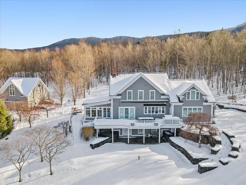 This exquisitely maintained home boasts an alluring contemporary design that caters to the demands of modern living. The remodeled kitchen is the heart of the home and seamlessly flows into the living spaces, creating a harmonious and inviting atmosphere that is perfect for relaxation and entertaining guests. Asunroom, finished basement with a well-equipped gym and wine cellar, and a sophisticated interior with modern furnishings further elevate the home's beauty and appeal. The primary suite is a true sanctuary, featuring two generously sized walk-in closets and a luxurious bathroom with dual sinks and contemporary finishes that exude elegance and style. For those with a penchant for fashion, an additional large walk-in closet provides a dedicated space for your designer goods. There are two well-appointed guest rooms, one with an en suite bath. The property offers breathtaking views of the majestic Stowe Mountain Resort, and the expansive deck with a built-in grill is the perfect place to host outdoor gatherings. The exterior is adorned with stunning stonework and established gardens that add to the property's charm and allure, while the attached garage offers convenience to the homeowner. Additionally, a detached 2-car garage offers both ample storage and a finished overflow room. This versatile space comes complete with a full kitchen and bath, providing an opportunity for a multitude of uses.