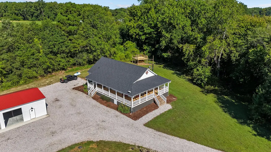 This Custom built modern farmhouse is the perfect blend of rustic and chic. Built in 2023 on an amazing 15.96 ACRES! Plenty of natural light, you'll love entertaining guests in this space. This 3 bedroom 2 bath home has everything you need to make memories that will last a lifetime! Walk in the front door and you will find soaring wood ceilings, masonry fireplace with wood-burning stove to keep your entire house warm while saving tons of money. Foodie? No problem, this chef's kitchen has beautiful custom cabinets, gas range and matte granite countertops. The butlers pantry is large enough for a twin bed and all of your canned goods . Yes, there are orchard trees and half an acre fenced in garden area!! You will absolutely love relaxing on the wrap around porch in the morning or in the evening. Crawlspace is encapsulated and temperature controlled! Detached 3 car garage has a wonderful workshop. The chicken Palace will convey. Pole barn and gated drive make this home unforgettable. Come live the simple life in a fantastic home! and take advantage