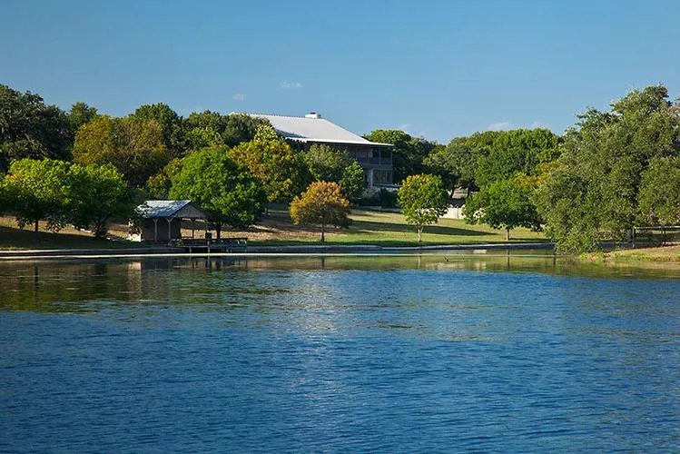 On the outskirts of Kerrville, Texas, along the historic Western Cattle Trail to Dodge City, Kansas, and beyond is this 55+-acre Town Creek Estate Ranch. The main residence overlooks a beautiful lake on Town Creek and is comprised of 15,000 plus square feet. The estate is perfectly situated and configured for luxury living and lavish or relaxed Texas Hill Country entertainment. The estate accentuates indoor and outdoor living with a large 50- by 30-foot pool and spa, outdoor fireplaces, and fire pits for outside entertainment during the mild Hill Country nights.