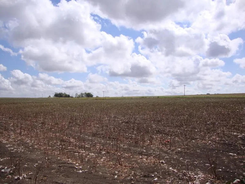 Partially in crops (cotton) with the remainder being a seasonal creek surrounded by heavily wooded areas.