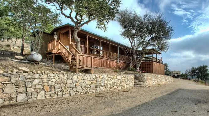 Views abound on these Gorgeous 55+-acres! Property is completely fenced and gated, paved road to home, 2 Great cabins which would make great weekend retreats, B&B or guest homes, Beautiful building site and good hunting property. This unrestricted and peaceful acreage with nice breezes is waiting you! Sit on the porch and enjoy the beauty of the Texas Hill Country.